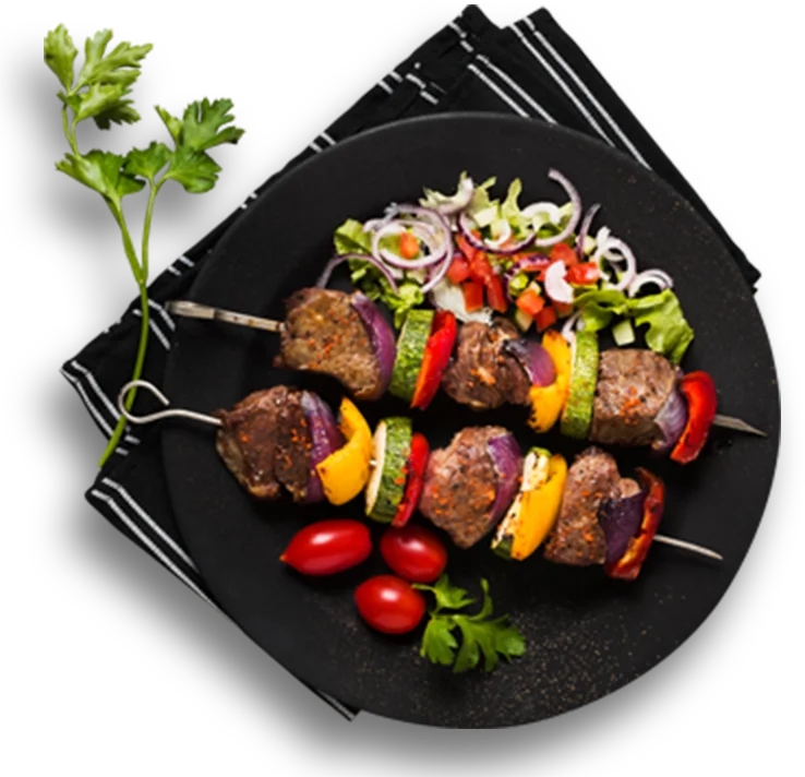 Chef’s special Mutton, Beef and Chikcken Shashlik Kebab grilled on smoky applewood charcoal with a touch of garlic butter and mustard oil.